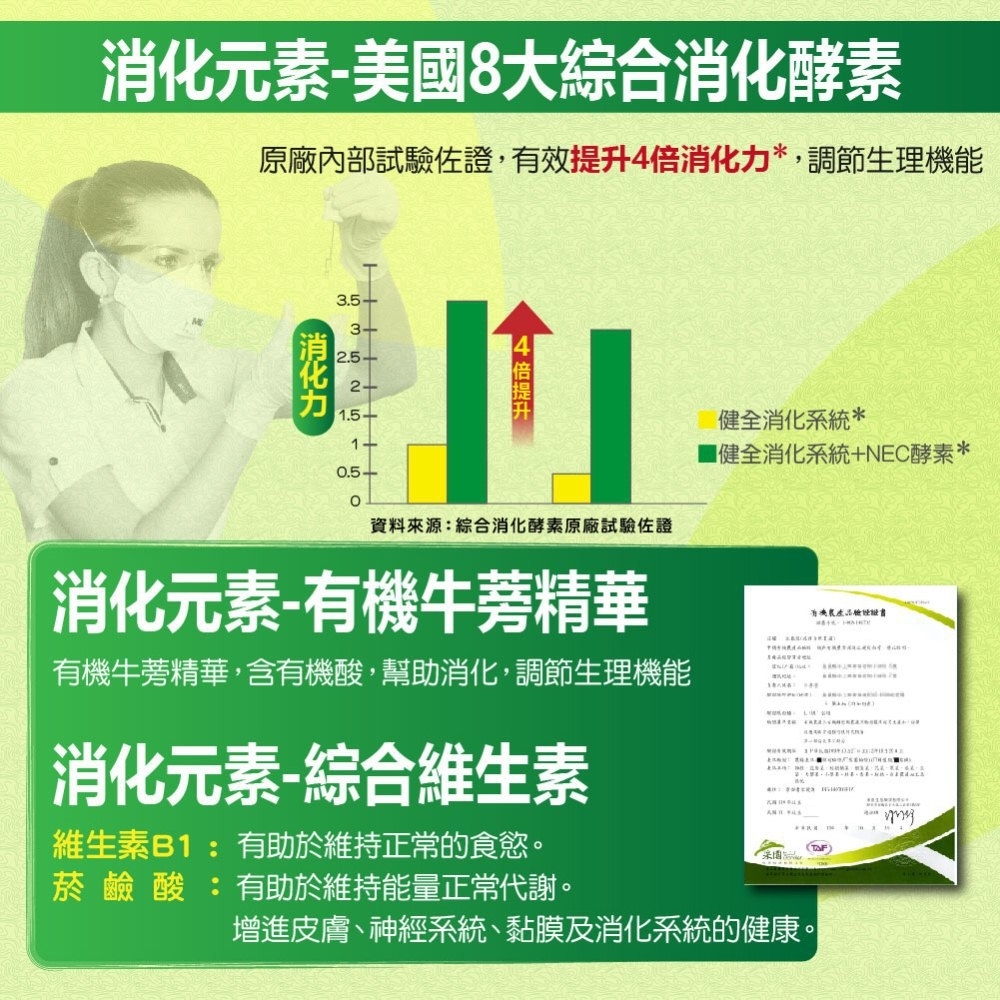 4.有機牛蒡精華+美國8種綜合消化酵素,幫助消化,調節生理機能。