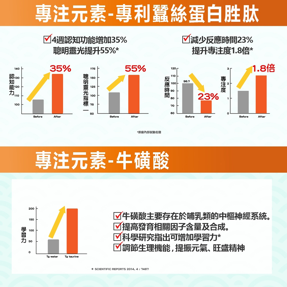 2.四周提升認知功能35%、聰明靈光提升55%、增加反應時間23%、提升專注度1.8%