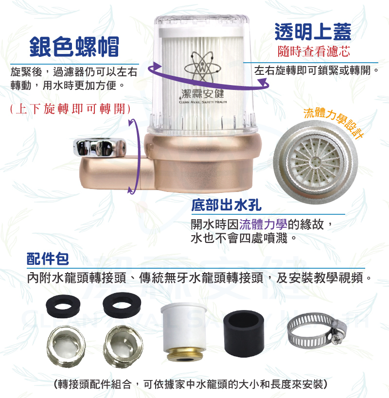 流理臺水龍頭專用過濾器:多功能流理臺水龍頭專用過濾器x1+3種規格轉接配件包x1