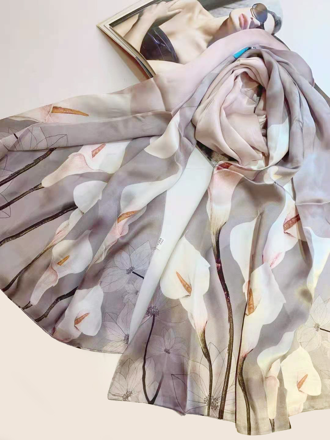【蠶絲圍巾-海芋花語】