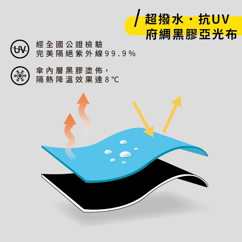 ⚡傘布:99.9%抗紫外線 降溫8度 不透光黑膠布