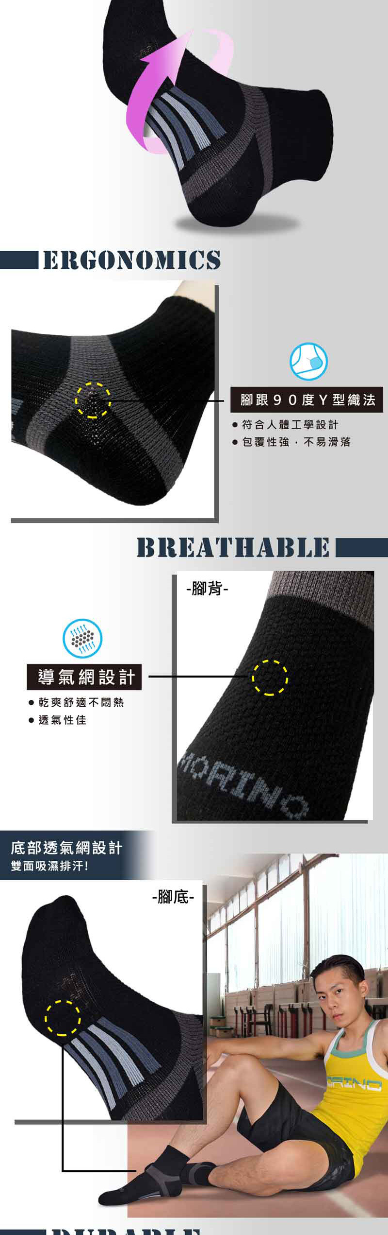◎底部透氣網設計,雙面吸濕排汗。