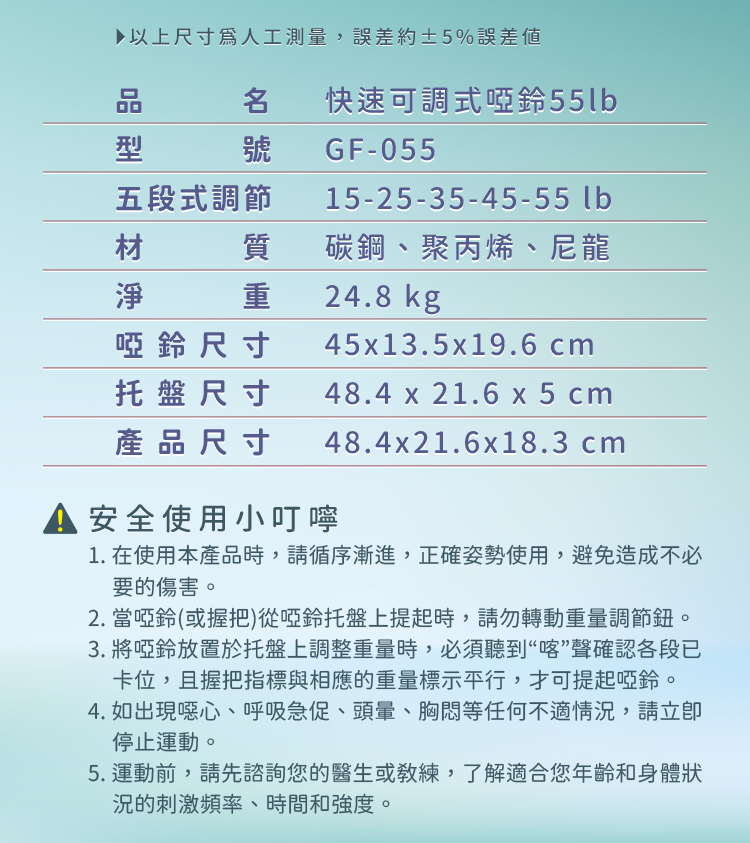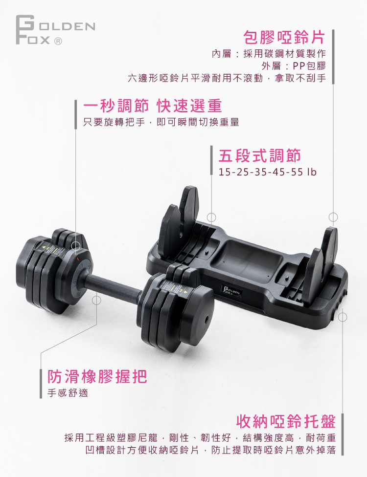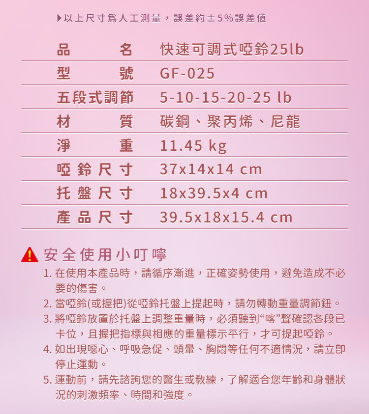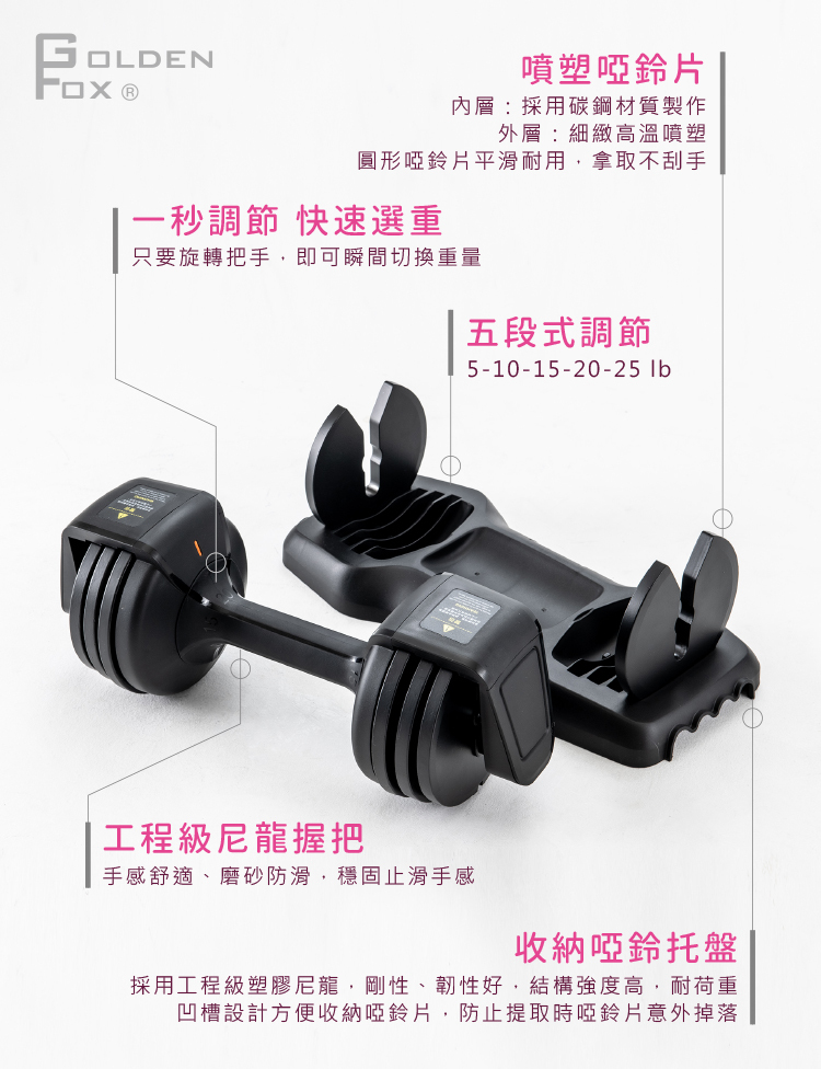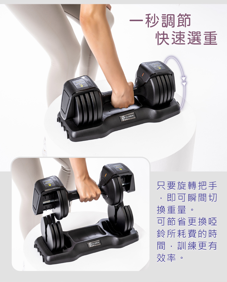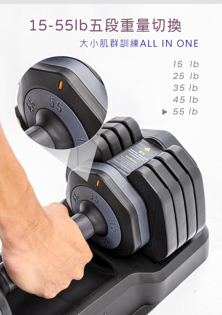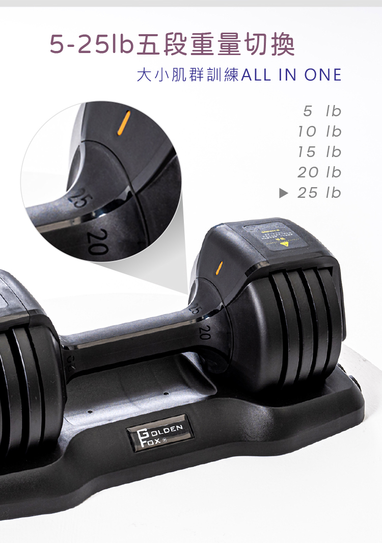 ■5-25lb五段重量,旋轉握把瞬間換重