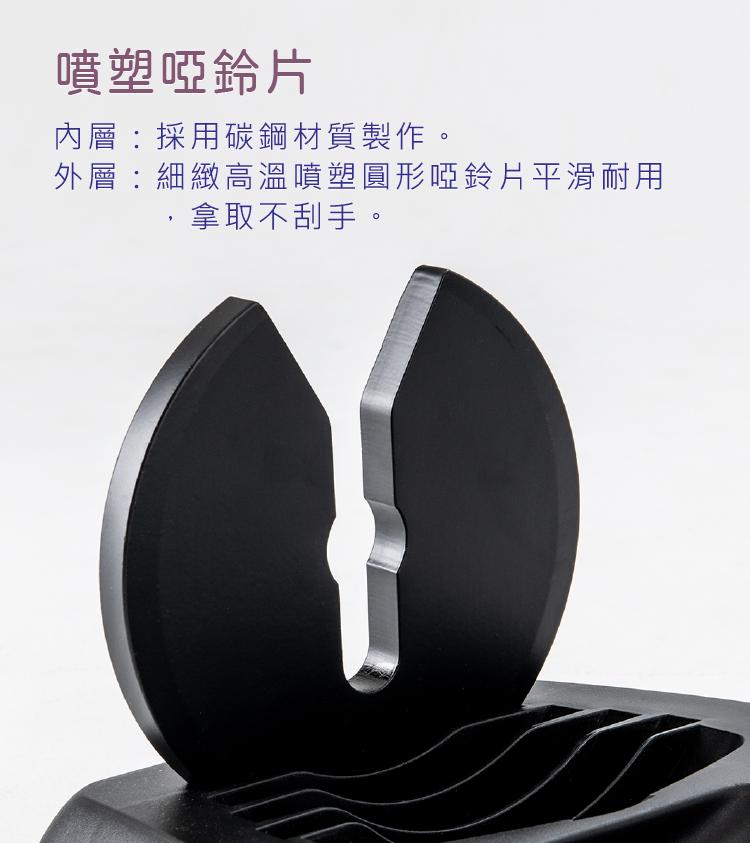 ■碳鋼材質噴塑啞鈴片,多重安全鎖扣