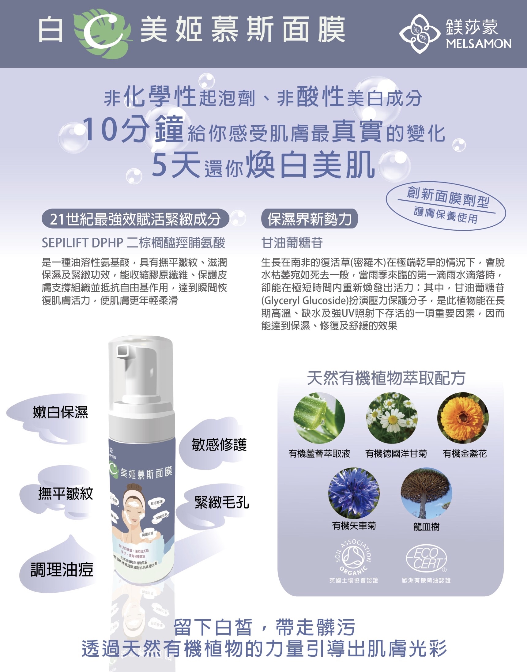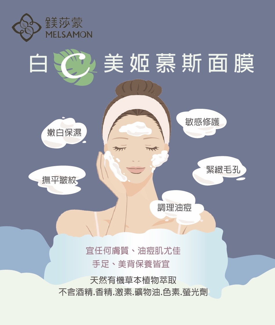 白C美姬幕斯面膜天然有機植物草本萃取、