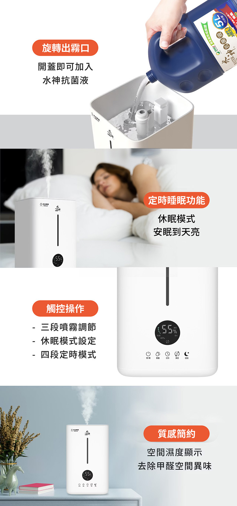 - 本霧化器無法添加非水神抗菌液以外之任何液體,如:精油、香精…等,以免縮短使用壽命或造成損壞。