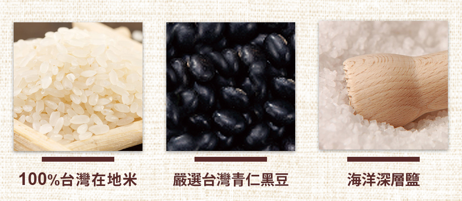 ▼精選顆顆飽滿青仁黑豆,台灣栽種黑豆搭配在地優質米▼