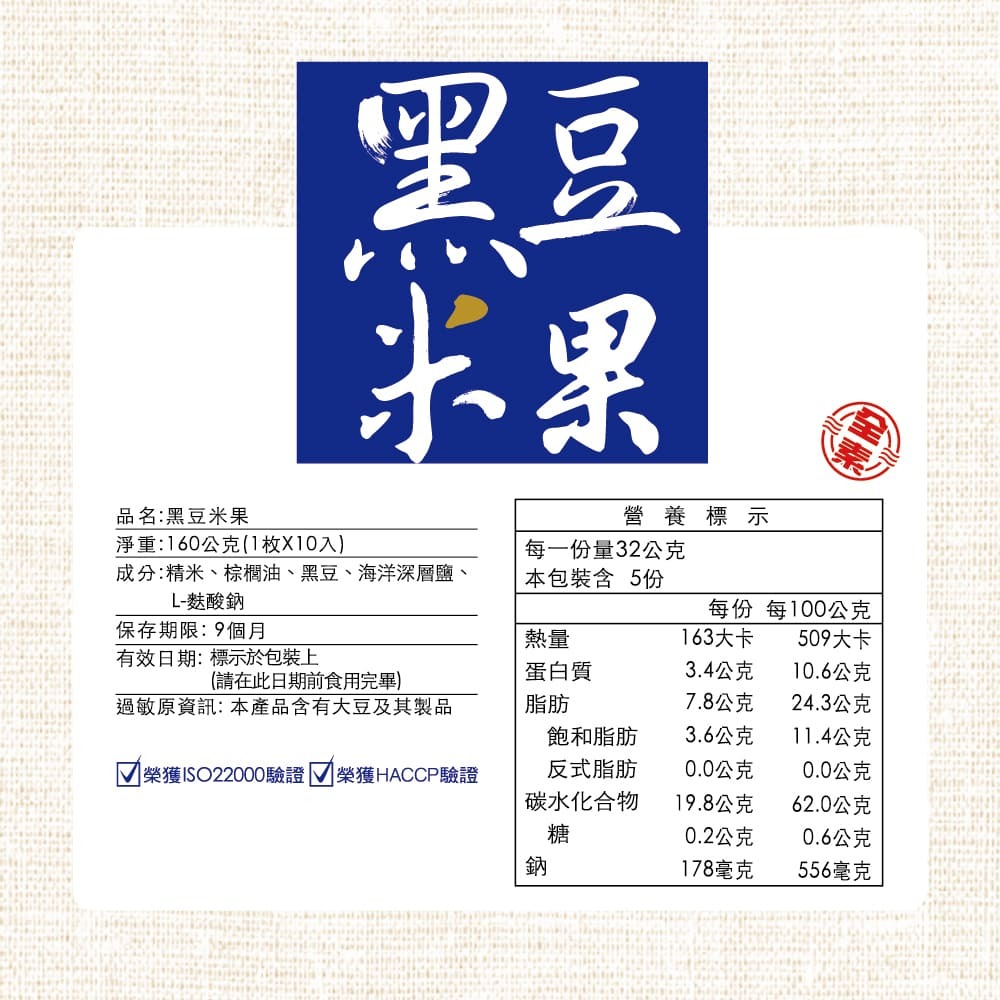 商品品名:黑豆米果