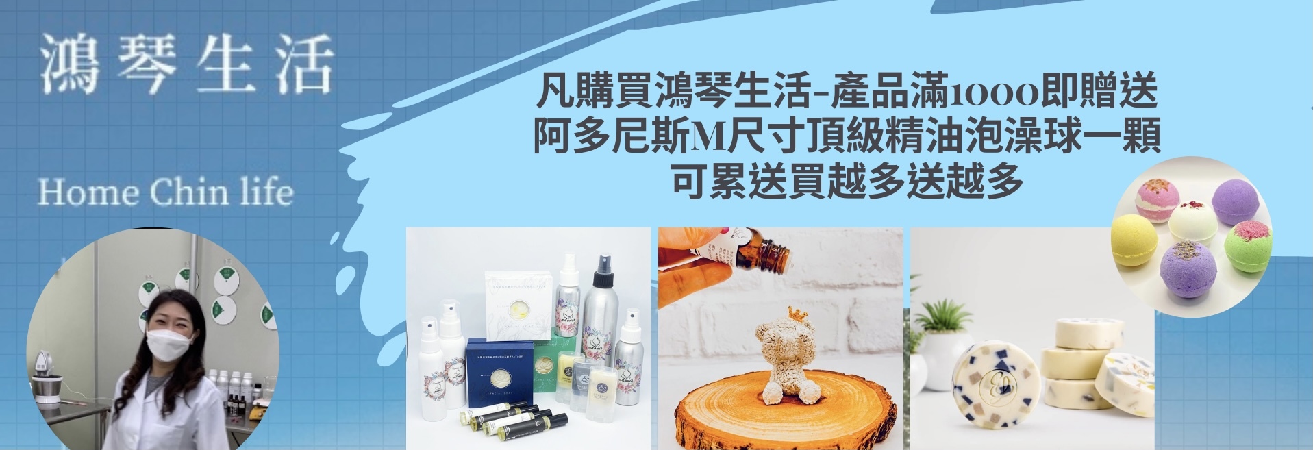 凡購買鴻琴生活產品滿1000即贈送阿多尼斯頂級精油m尺寸泡澡球一顆