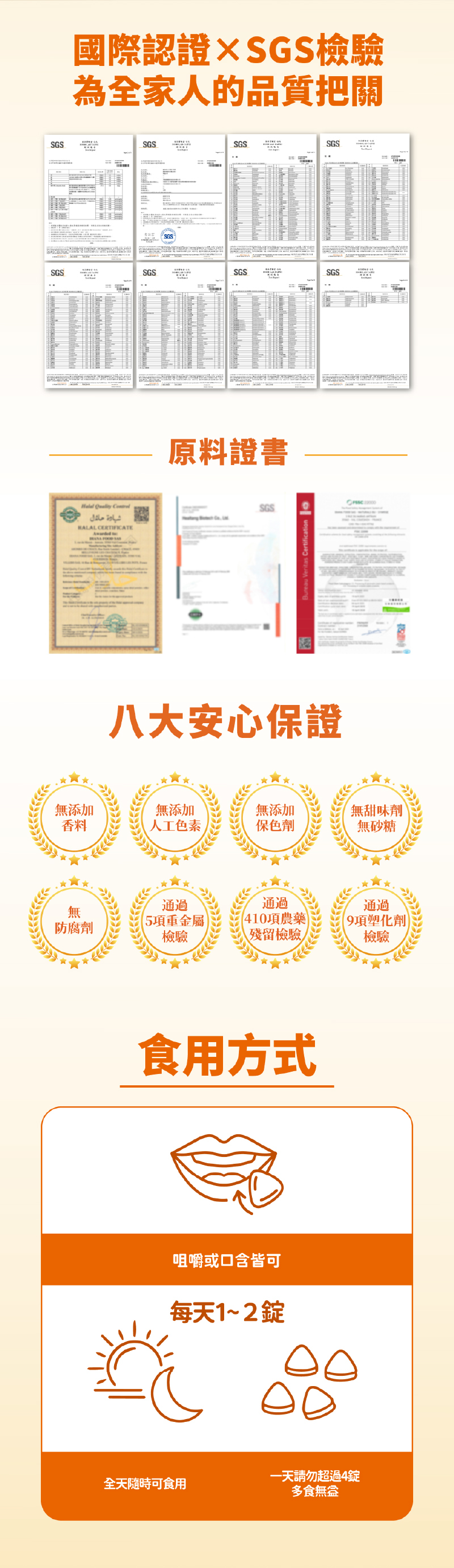 食用方式:每日1~2錠,一天請勿超過4錠。多食無益