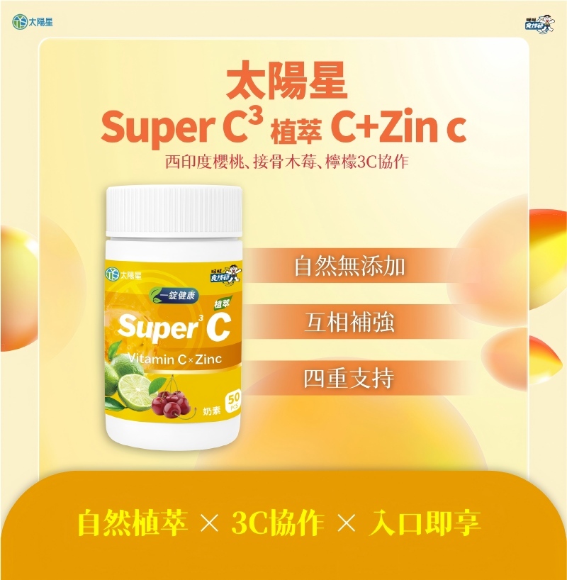 【太陽星】維他命C Super C³ 植萃 C+Zin c(50錠/瓶,多規格)