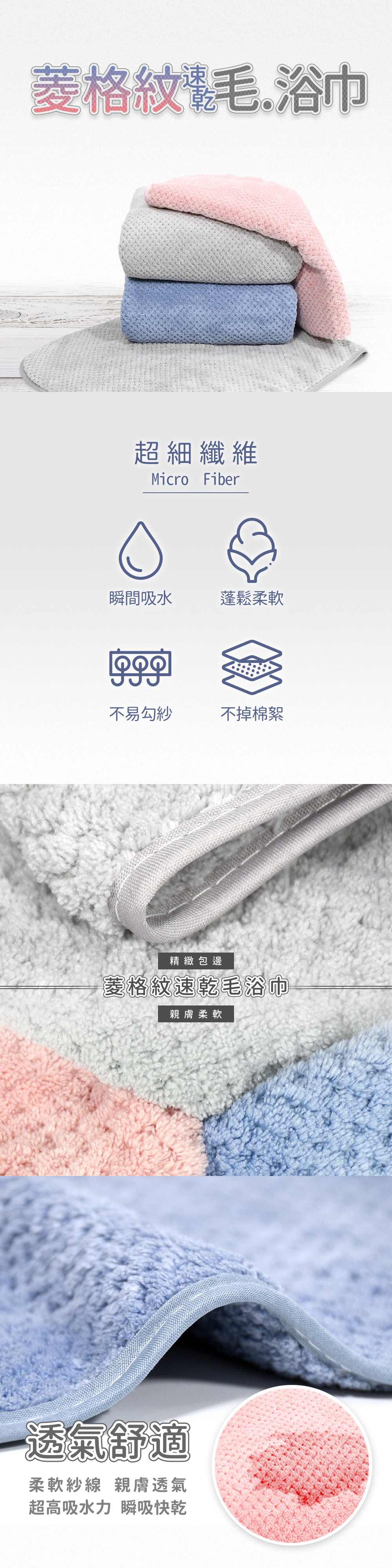 內容:超細纖維菱格紋速乾浴巾2條