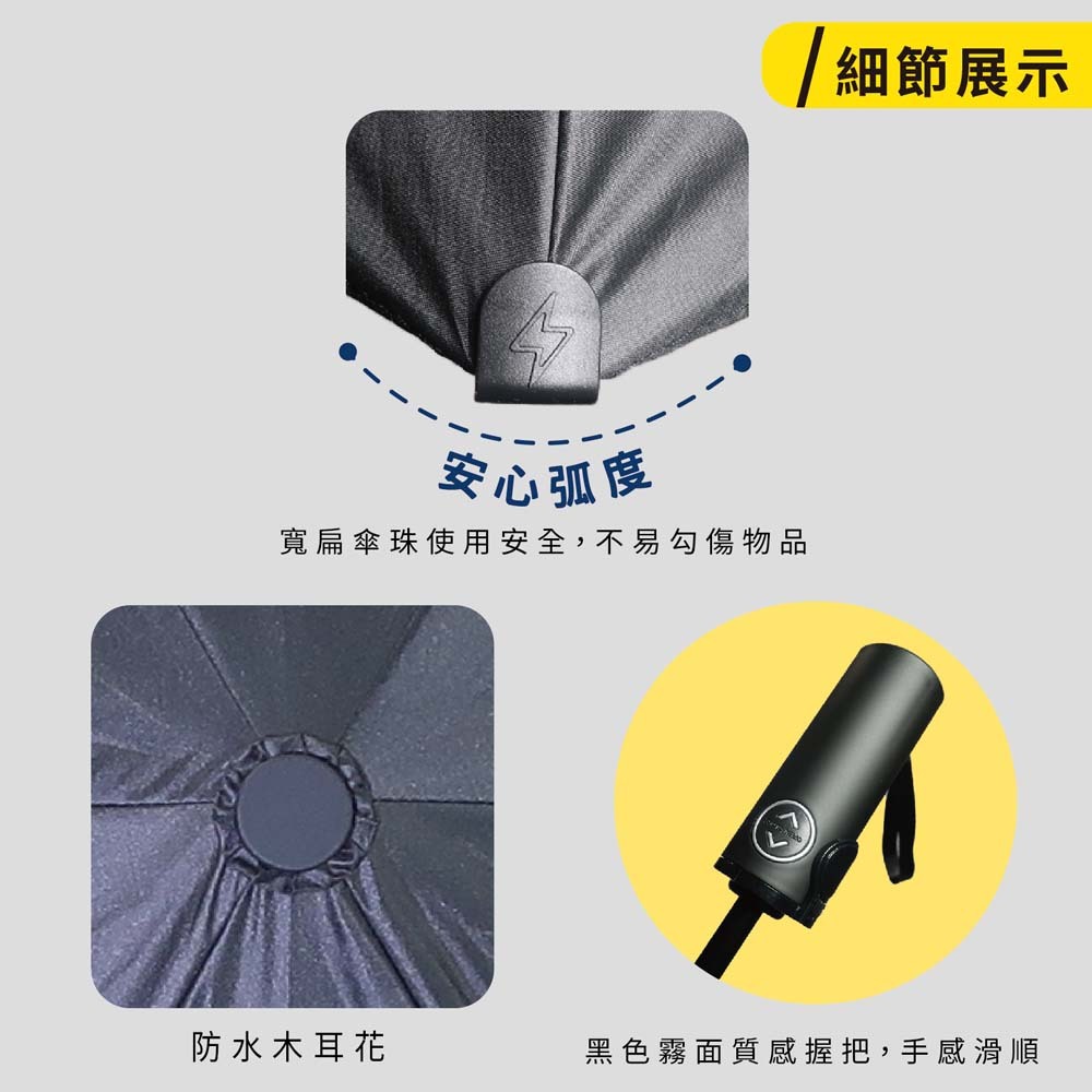 【傘電俠】25吋 不傷人寬扁傘珠 雙安全自動開收傘 01-650018