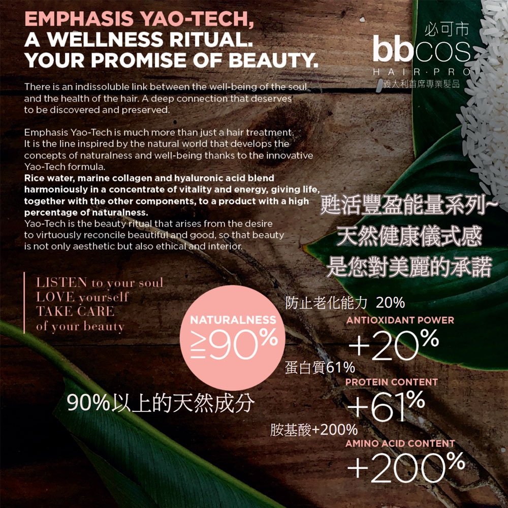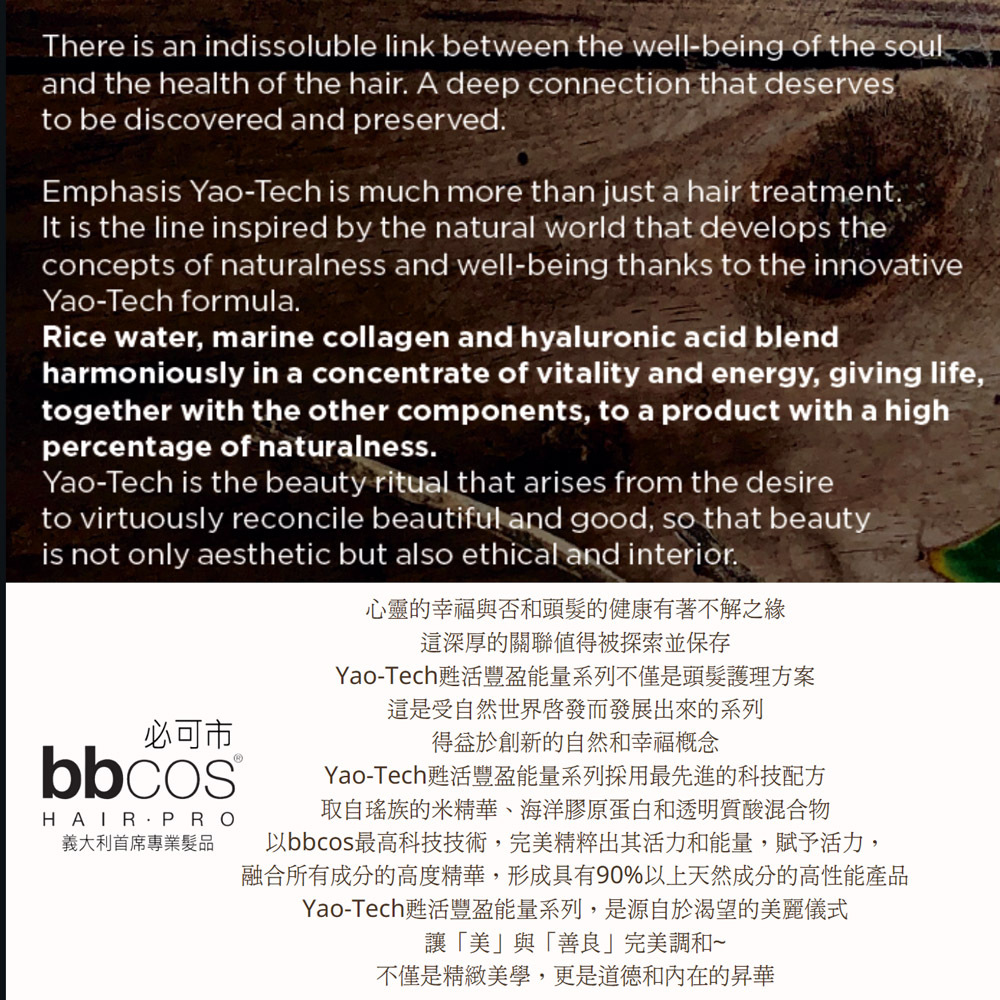 ☆Yao-Tech獨家配方的所有功效協同作用於頭髮結構,集中護理需要新生命的頭髮