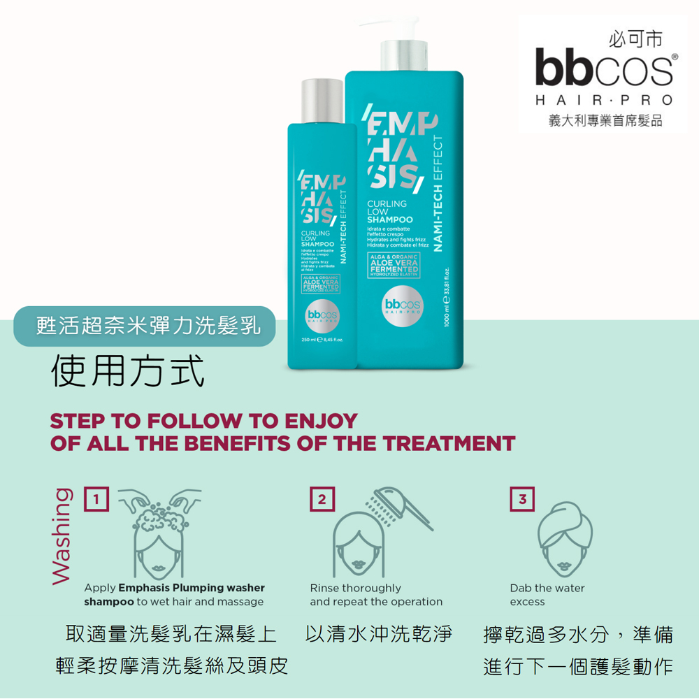 ☆對於特別乾燥的極捲型頭髮,可以在[甦活超奈米彈力洗髮乳]中直接加入[甦活超奈米彈力護髮膜],進行2合1洗護。bbcos創新的頭皮及髮絲新用法,去除頭皮及髮絲的雜質和多餘的油膩,不破壞水脂膜。