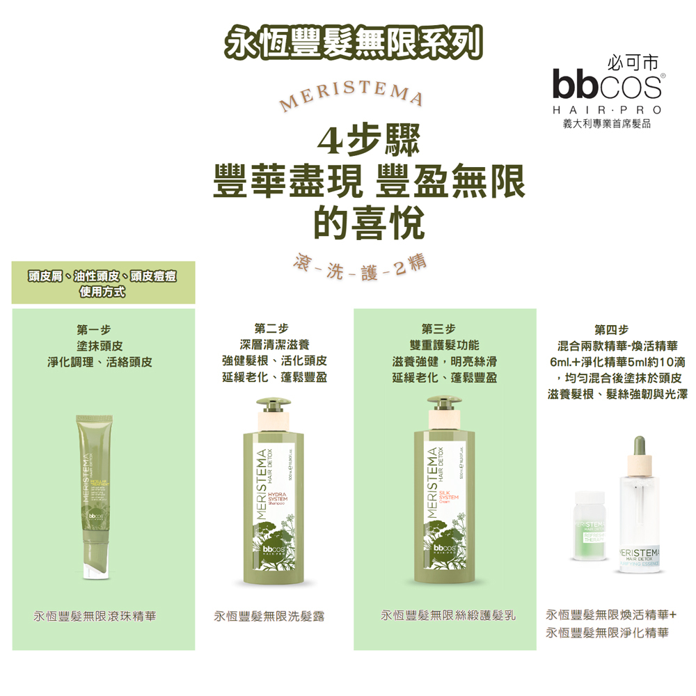 1.商品品名:【義大利bbcos必可市】永恆豐髮無限洗髮露