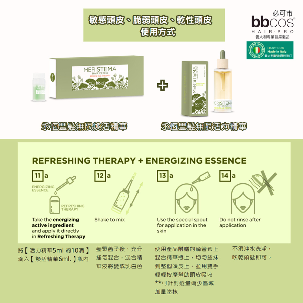☆使用時請搭配永恆豐髮無限煥活精華使用,可活化頭皮,增強頭皮的防禦力,強化皮膚的保護力、強健髮根。