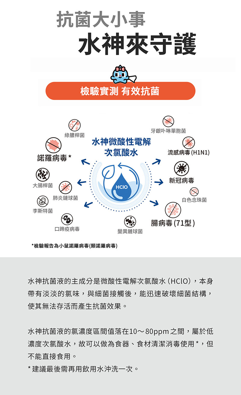 ● 次氯酸水非飲用水,切勿飲用。