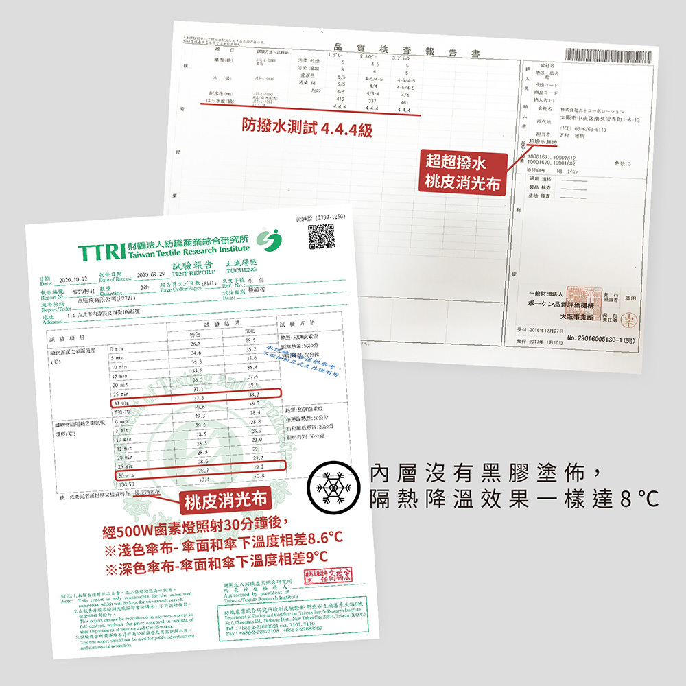 傘布:99.5%抗紫外線 降溫8度 50DX50D 300T 桃皮消光布