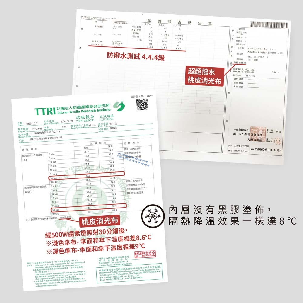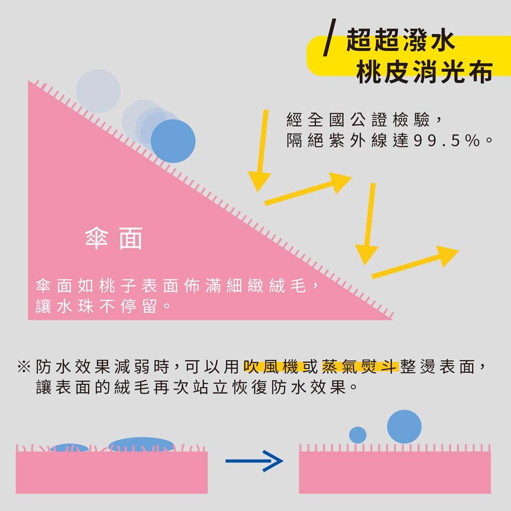 傘布:99.5%抗紫外線 降溫8度 50DX50D 300T 桃皮消光布