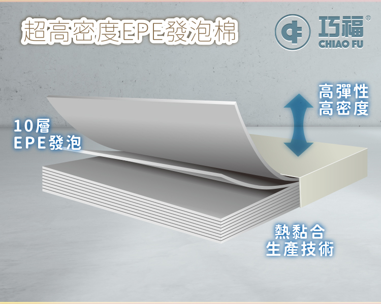 ■5cm厚度,10層高密度EPE,紮實柔軟彈力