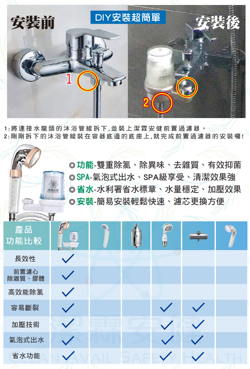 內容物:除氯沐浴淨水器x1+除氯前置過濾器x1