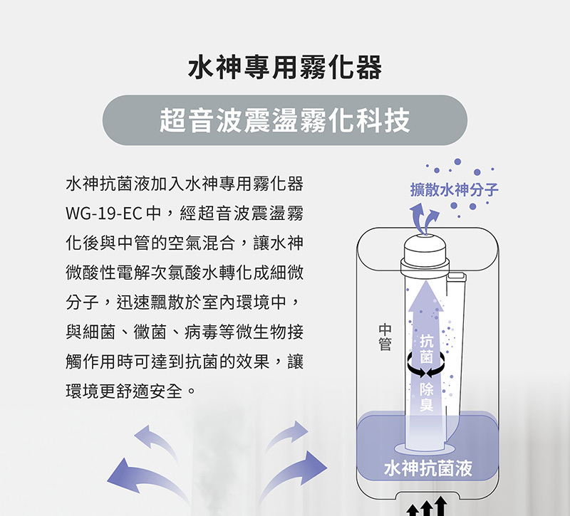 - 本霧化器無法添加非水神抗菌液以外之任何液體,如:精油、香精…等,以免縮短使用壽命或造成損壞。