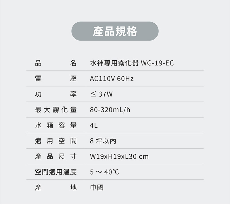 2.商品組合/規格:【旺旺水神】水神專用霧化器WG-19-EC(多規格)